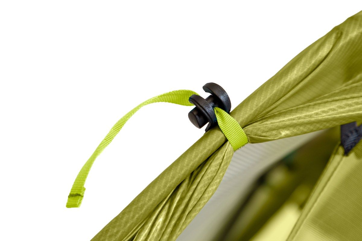 Plastic clips Flybar™, which attach to the tent pole at the top of the structure, increase the interior space of the tent above the head and evenly distribute the tension created when tensioning the rainfly.