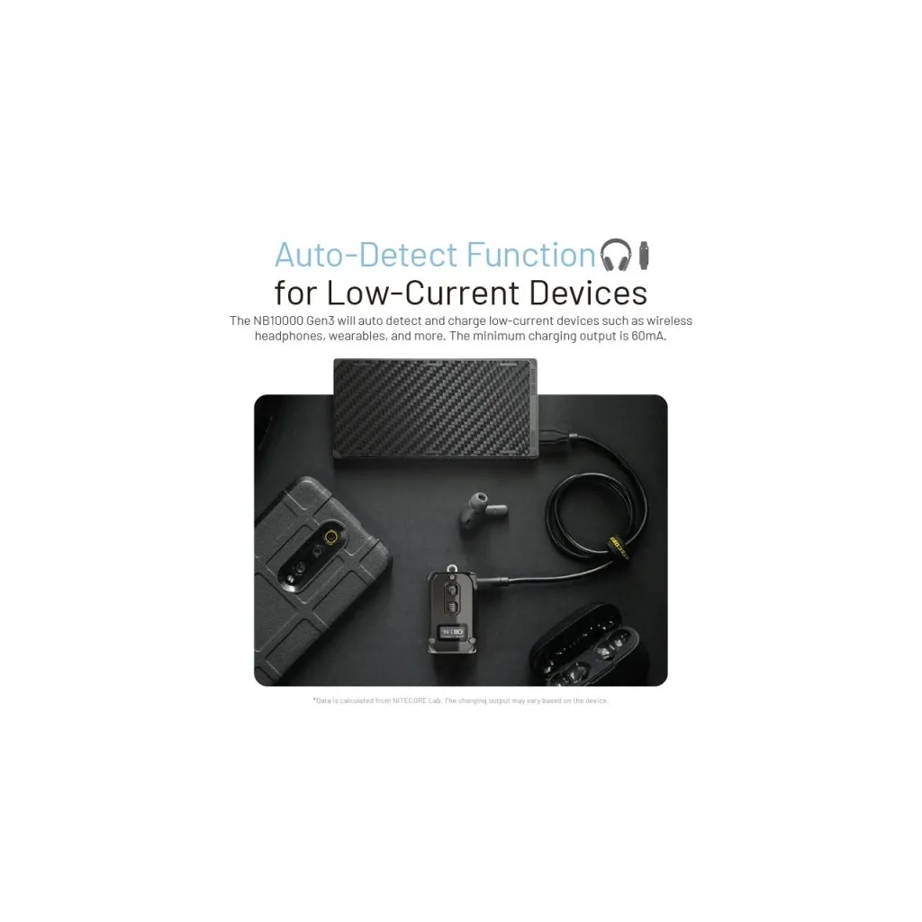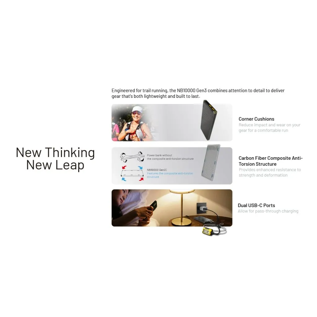The new generation of the world’s lightest power bank (150 g) is made from reinforced polymer with glass fiber, enhancing its durability. The NB10000 GEN3 now features corner padding, improved charging performance, and an automatically detectable low-current mode.