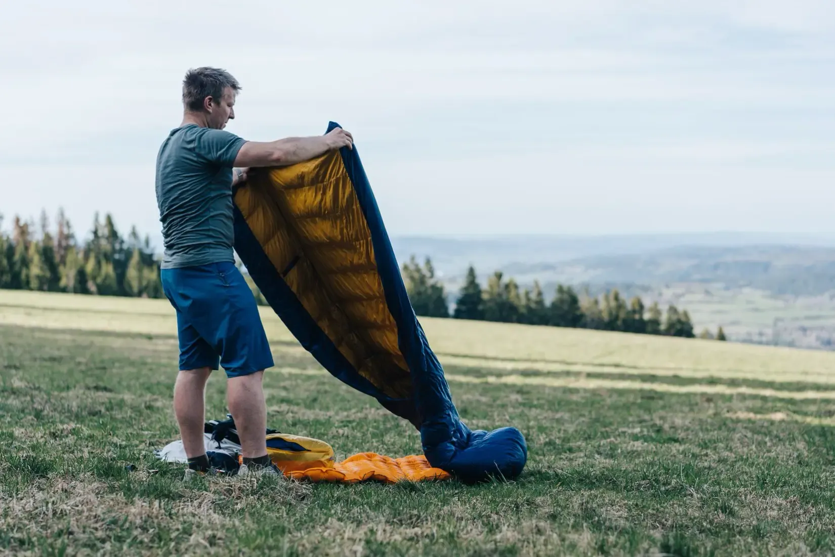 The sleeping pad takes care of insulation from the ground. To keep the opening on your back underneath you at all times, the quilt is attached to the sleeping pad using elastic straps. The quilt stays in its basic position all the time, and you can turn around in it. You can use the quilt with any type of sleeping pad (inflatable, foam). The quilt also doesn’t have a hood – you can replace it with a beanie or a down jacket/sweater with a hood.