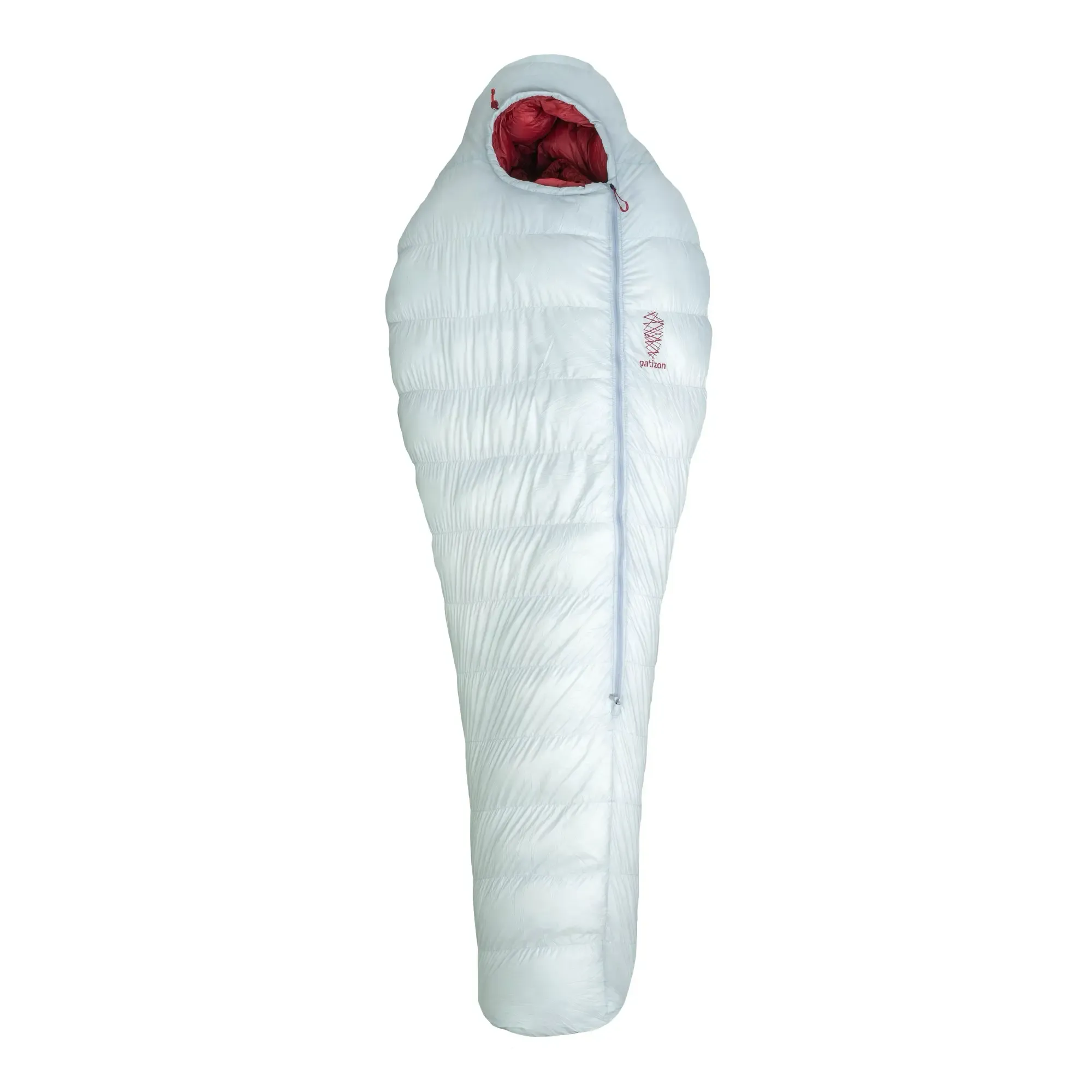 The mummy shape naturally follows the curves of the human body, reducing weight and increasing the effectiveness of thermal insulation. The Z-shaped chamber construction ensures even distribution of insulation within the chambers and prevents the formation of so-called cold spots at the seams.