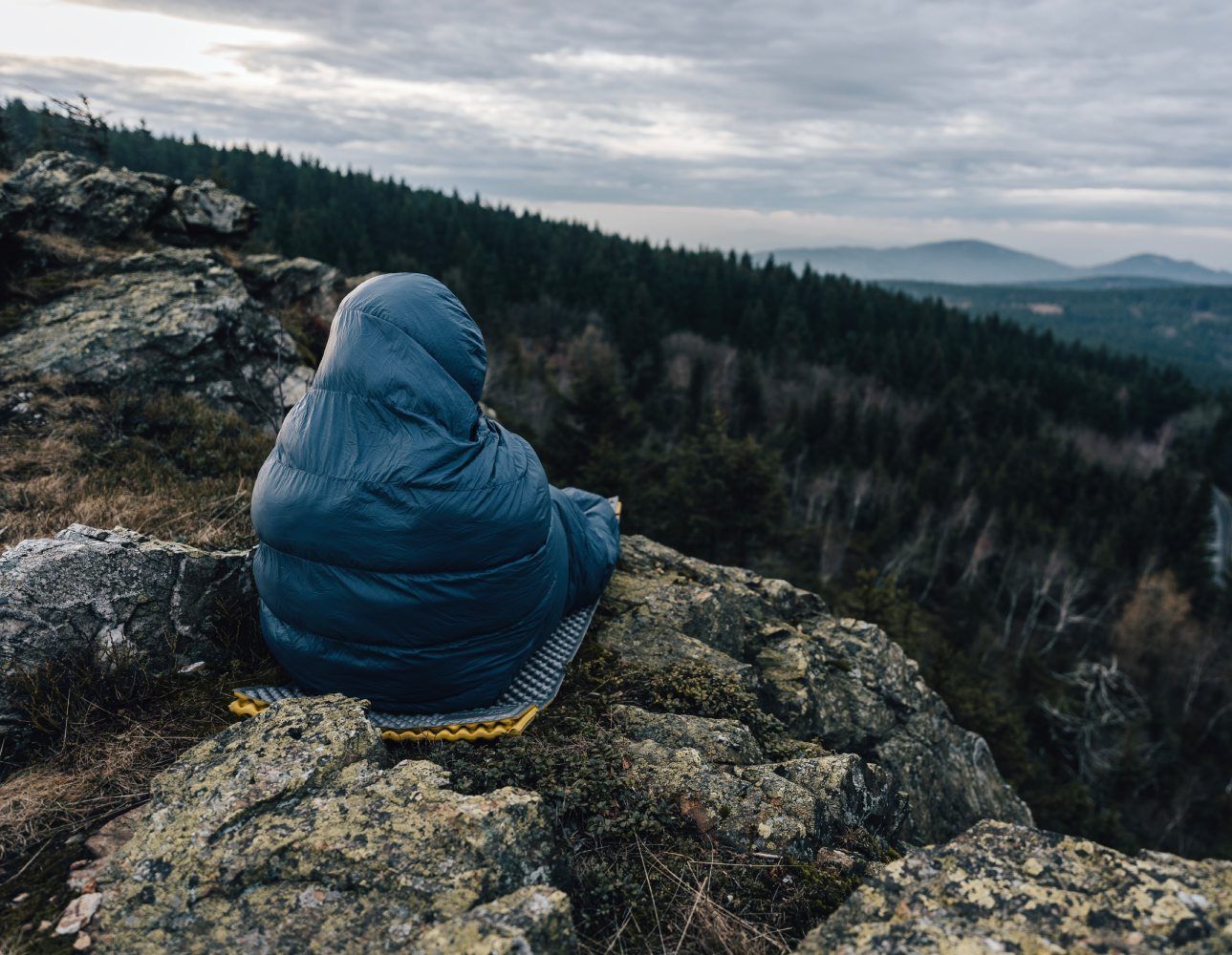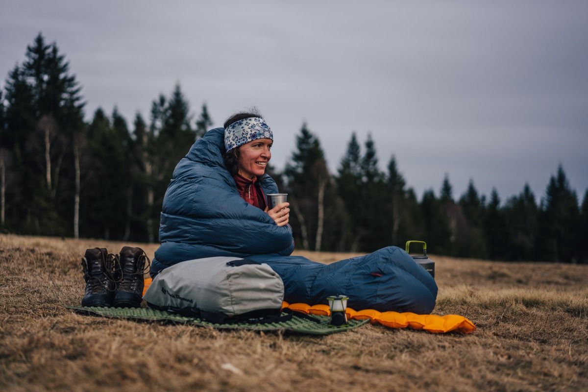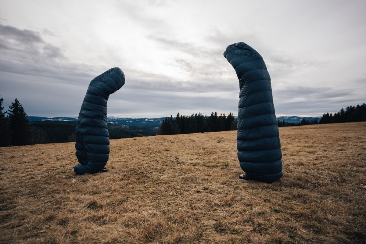 The sleeping bag in size M is filled with 300 grams of high-quality recycled down with a fill power of at least 650 cuin. The ratio of down to small feathers is 90/10. The down comes from a German supplier and has certification GRS (Global Recycled Standard). The insulating filling is distributed in the sleeping bag in a ratio of 50:50 (top part : bottom part).
