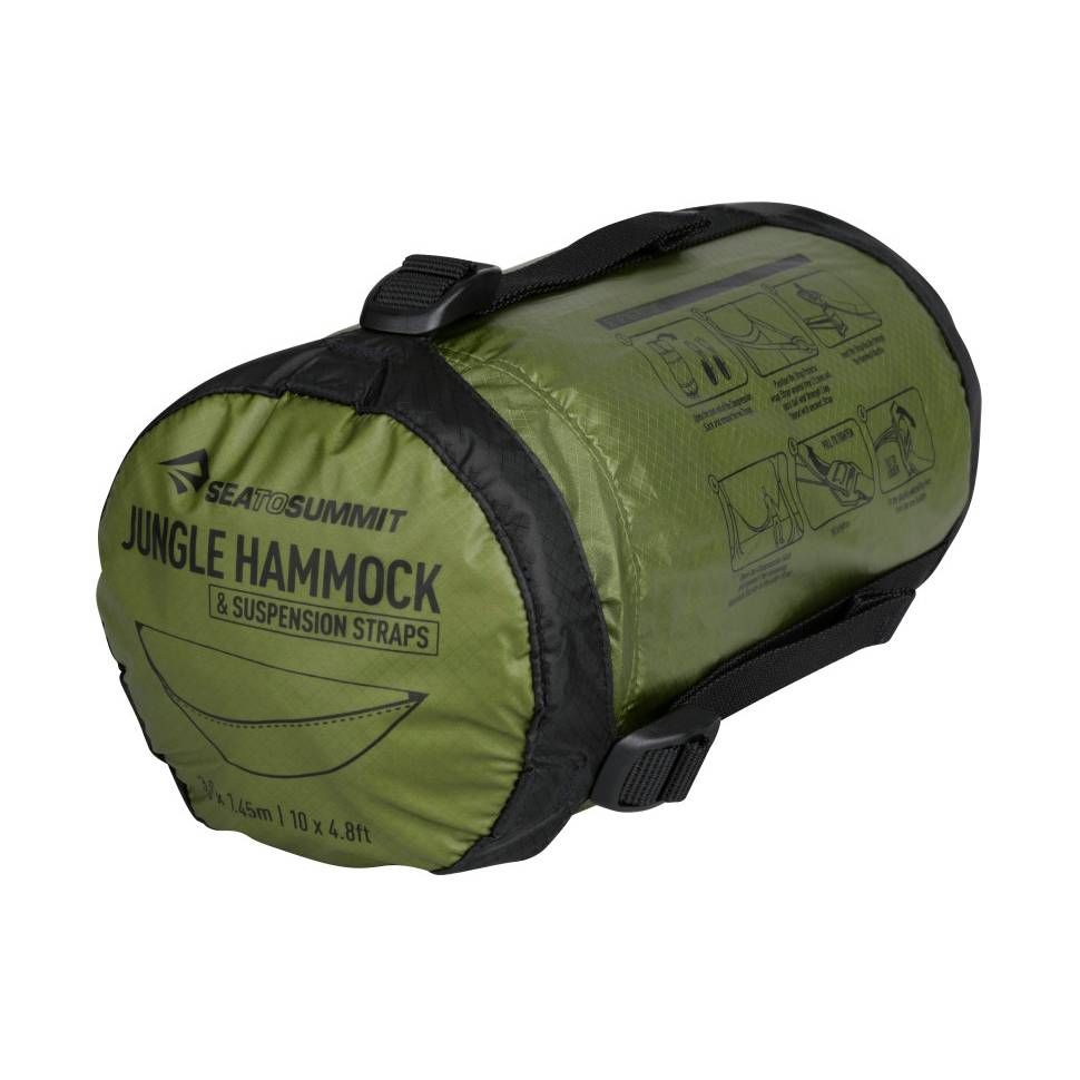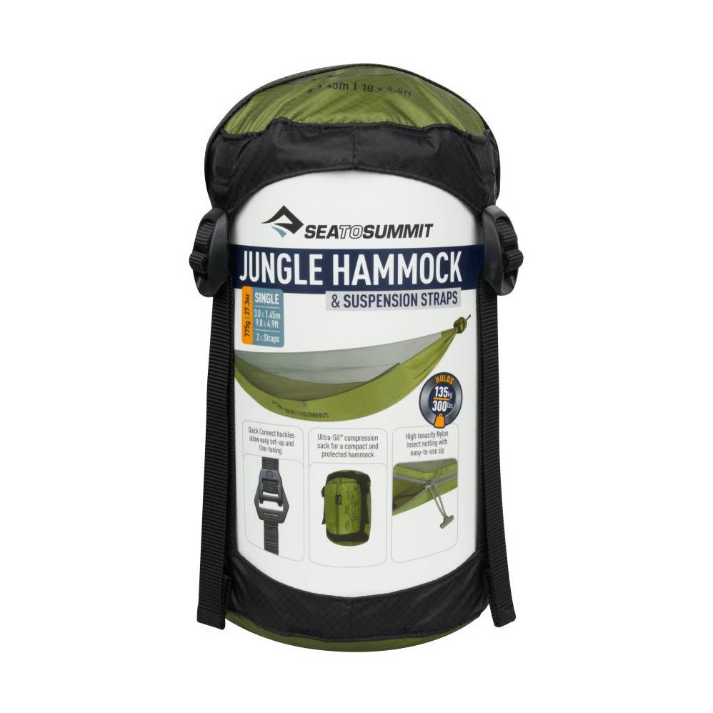 A well-designed and very well-crafted hammock set. It includes a hammock, an integrated mosquito net, and suspension straps. The hammock is constructed from lightweight and packable 70D Ripstop nylon with a load capacity of over 135 kg. In adverse weather, it is good to cover the hammock with a tarp Jungle Hammock Tarp.