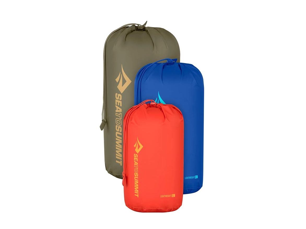 Sea To Summit Lightweight Stuff Sacks with a simple drawcord closure are excellent for organizing and storing your gear in a backpack during travel and all kinds of adventures. They protect your belongings from moisture and dirt but are not completely waterproof.