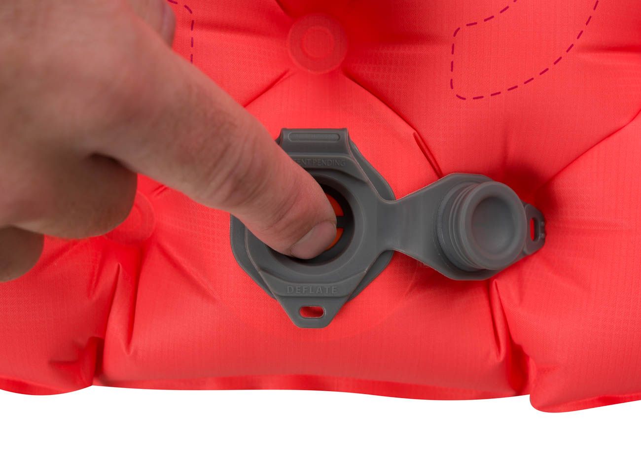 By opening the first section, you can inflate the sleeping pad and the air doesn't escape. Pressing the orange button in the middle releases the air.