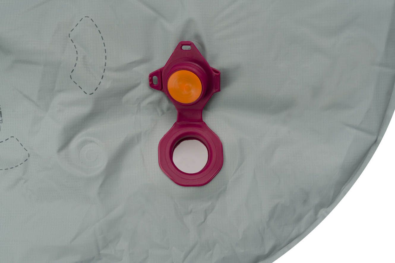 By opening the first section, you can inflate the pad, and the air does not escape. By pressing the orange point in the middle, you release the air.