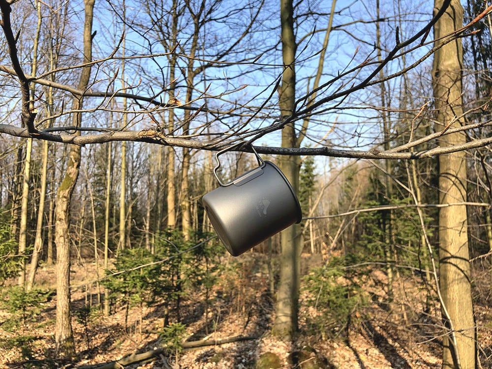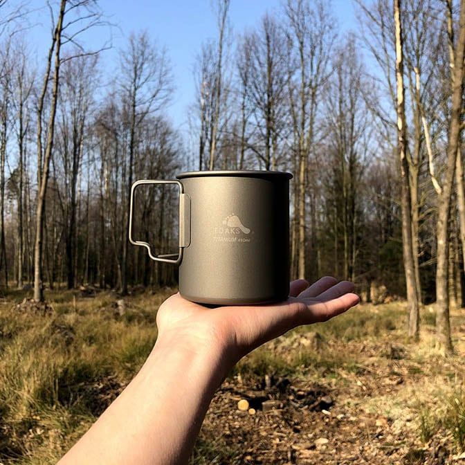 Ultralight titanium cup/mug with a capacity of 450 ml, ideal for coffee, tea, and heating water for dehydrated/free-dried meals. The weight of the mug is only 76 grams. Titanium gives this mug minimal weight, strength, and corrosion resistance. It has measuring markings on the inside. The package includes a storage sack.