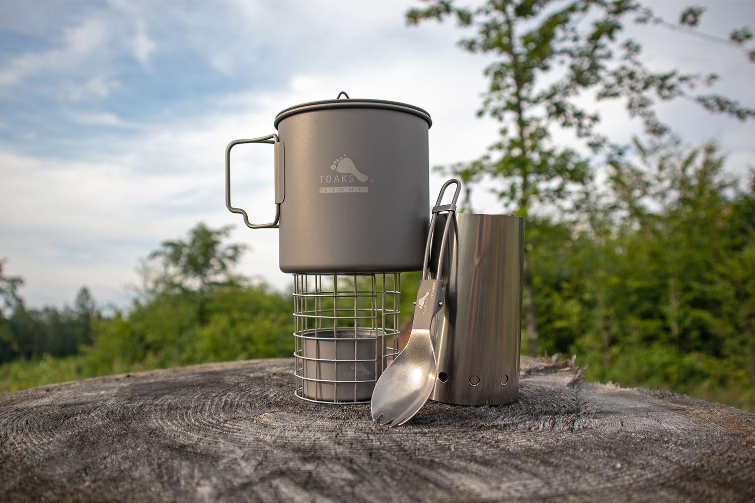 All components of the set, except for the stand, are made of titanium (grade 1 and 2, uncoated). This makes the entire set corrosion-resistant and as light as a feather. Except for the stand, each part of the set comes with its own small storage stuff sack.