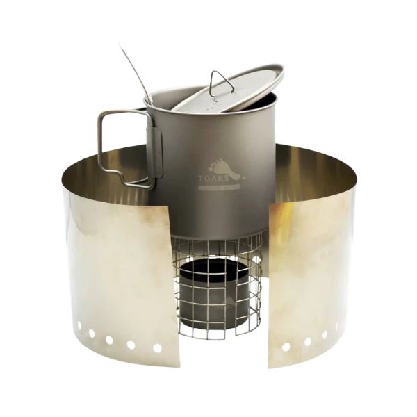 Titanium Windscreen is an ultralight titanium windscreen from a popular brand TOAKS, which focuses primarily on the production of travel cooking equipment. It is ideal for use with TOAKS alcohol stove, with an alcohol stove from EMO Outdoor, possibly with low-profile backpacking gas stoves. The windscreen protects the flame from the wind, reduces fuel consumption, and increases cooking speed.