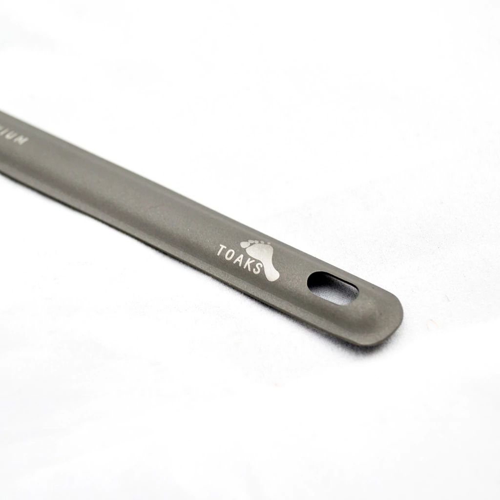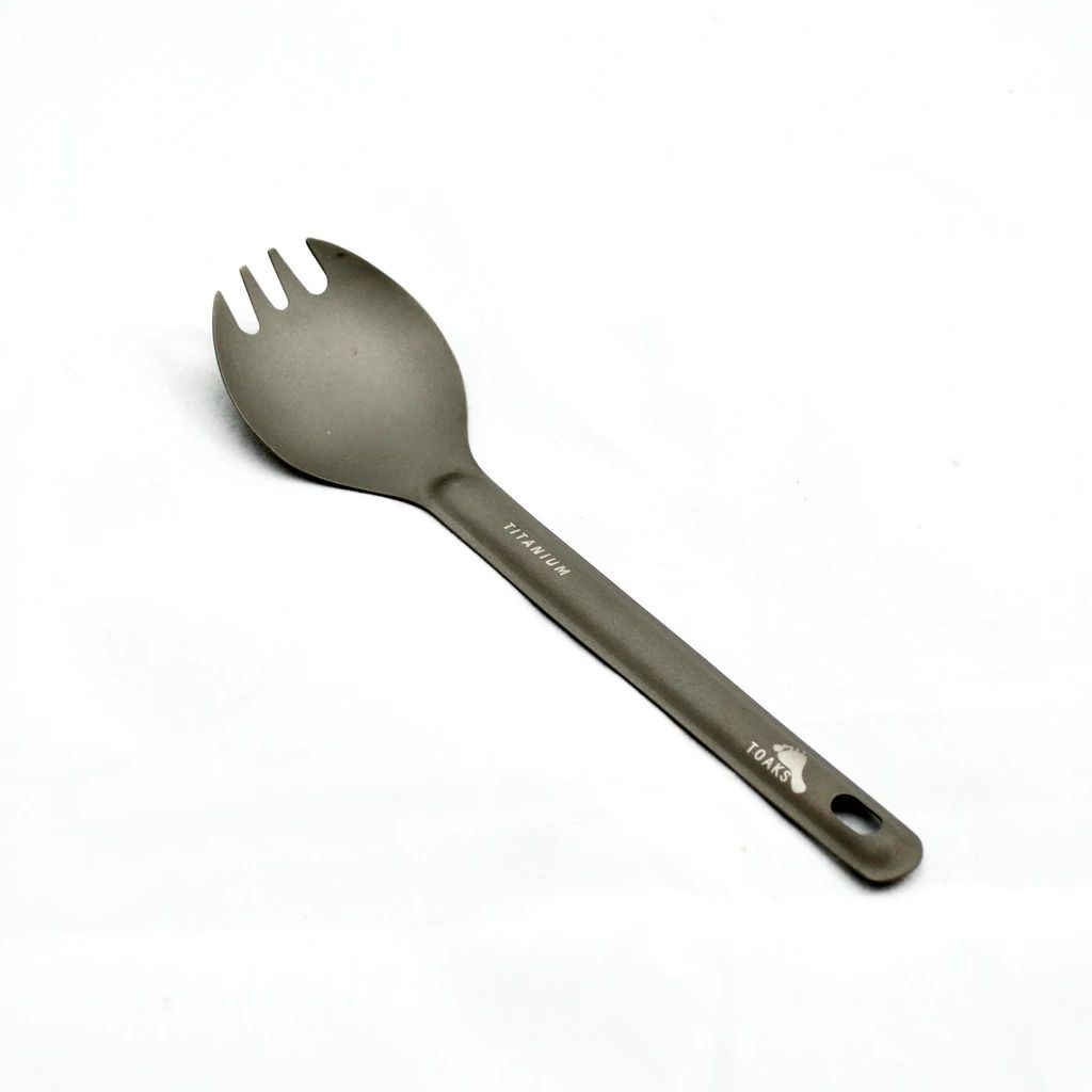 Ultralight yet durable serrated titanium spoon (spork). The spoon has a matte finish. Titanium provides the spoon with minimal weight, strength, corrosion resistance, and it's food-grade. The weight of the spoon is only 12,5 g.