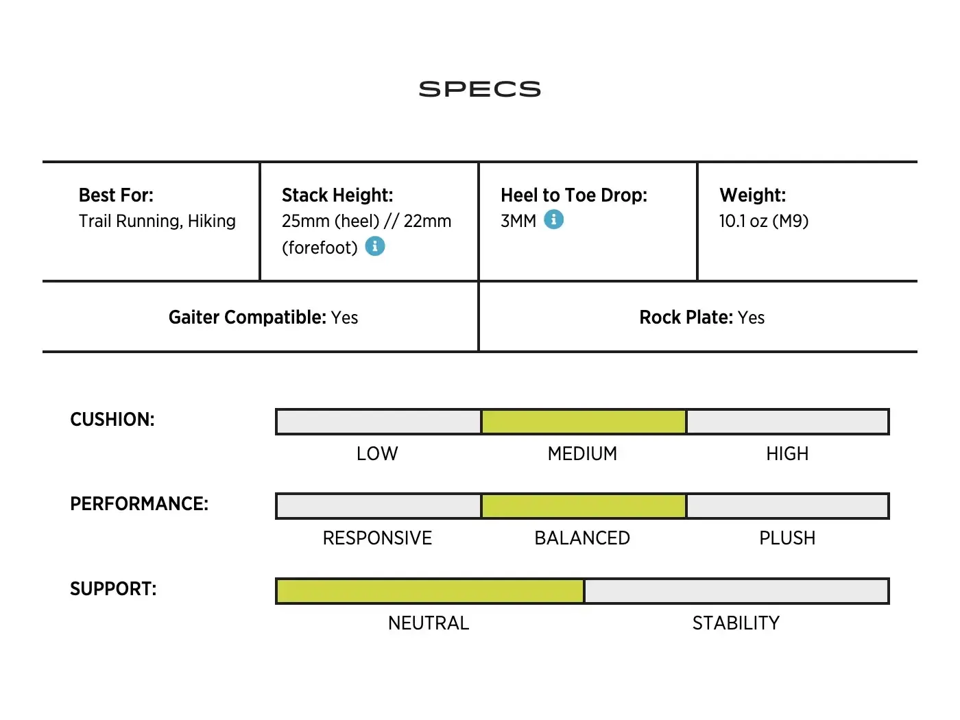 The 3 mm drop is an ideal compromise for those who prefer a natural foot strike but don’t want a zero drop at the same time. If you prefer a zero drop, check out the Pursuit 2 model.