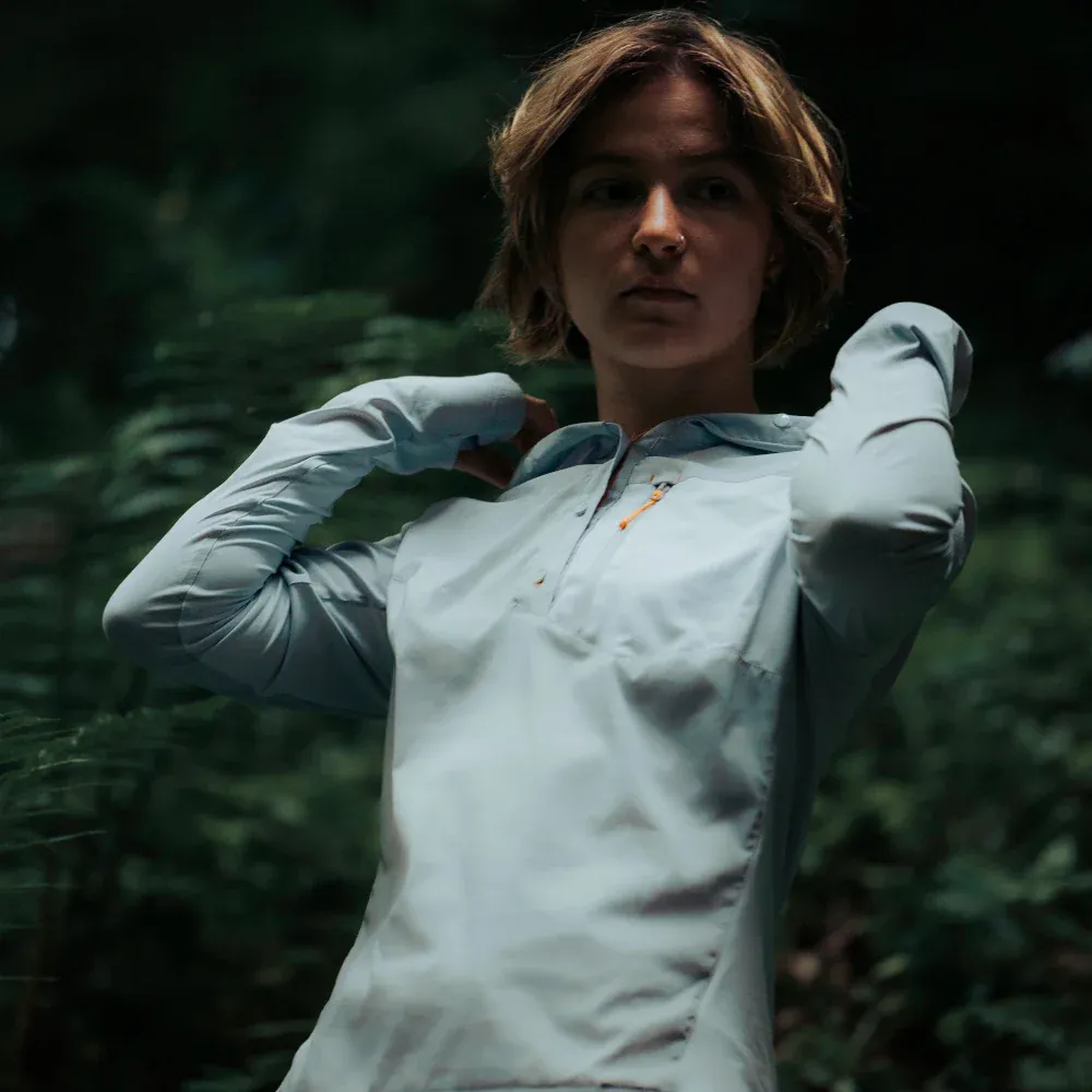 Maya Hood Trek is designed for all you travelers and adventurers who spend long hours on the move under the summer sun – whether it's on a mountain hike, during a multi-day backpacking trek, or while rafting on the water. It's a so-called sun hoodie, which means a comfy and functional long-sleeve shirt with a hood and reliable protection against UV rays.
