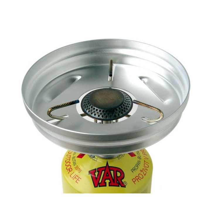 Windscreen for the VAR 2 gas stove, providing up to 25% fuel savings and reducing boiling time in unfavorable conditions. When turned over, it can be used as a stabilizing base for the fuel canister.