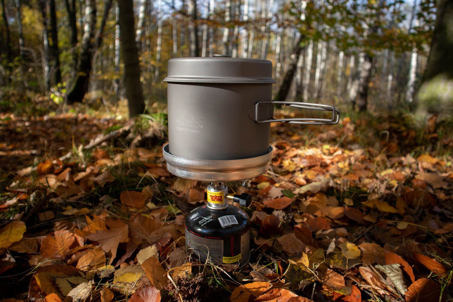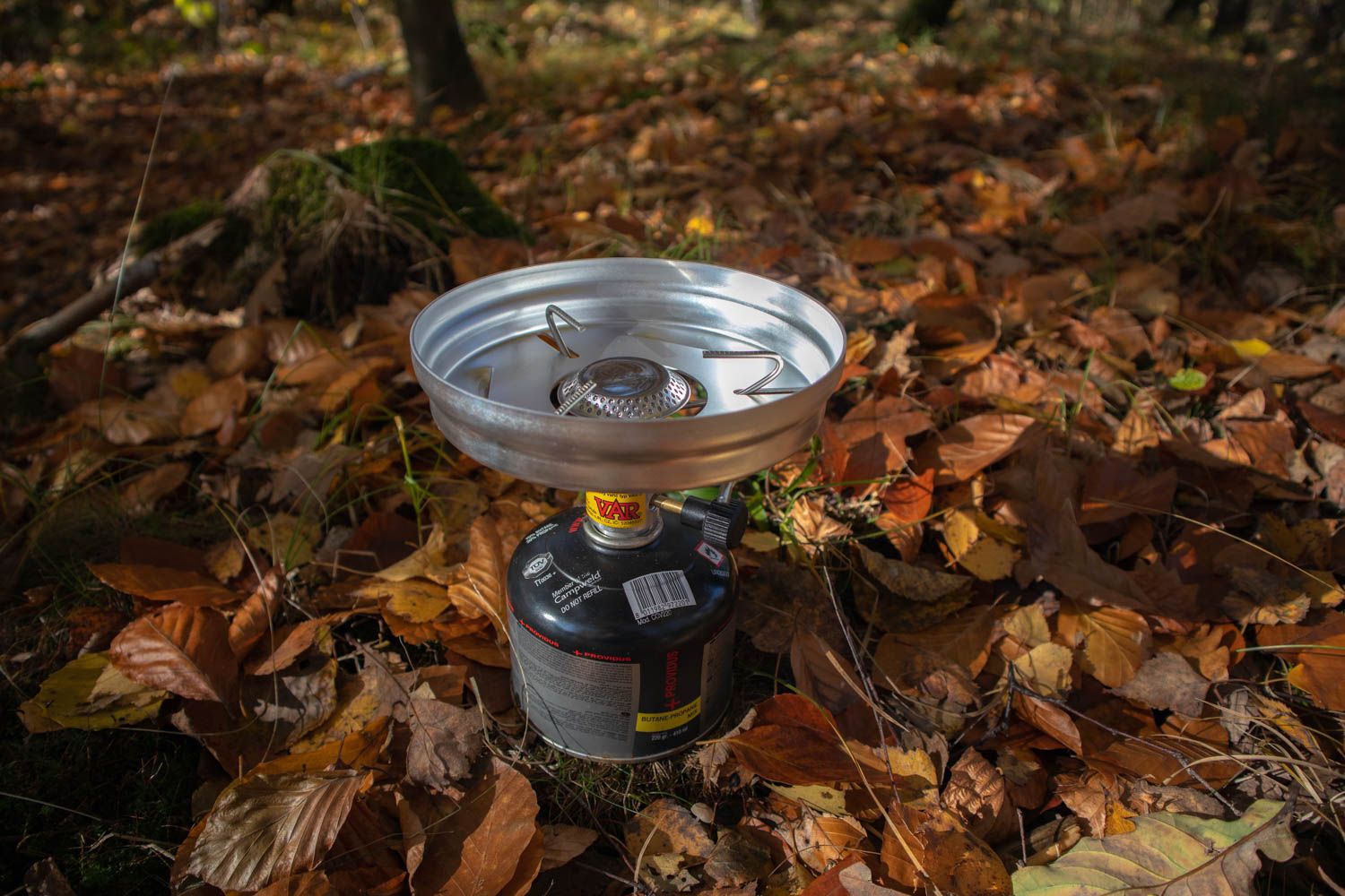 The windscreen effectively protects the flame from gusts of wind, and the large reflective surface reflects all the heat from the combustion gases under the cooking pot. When turned over, it can be used as a stabilizer for fuel canisters with a diameter of approximately 110 mm.